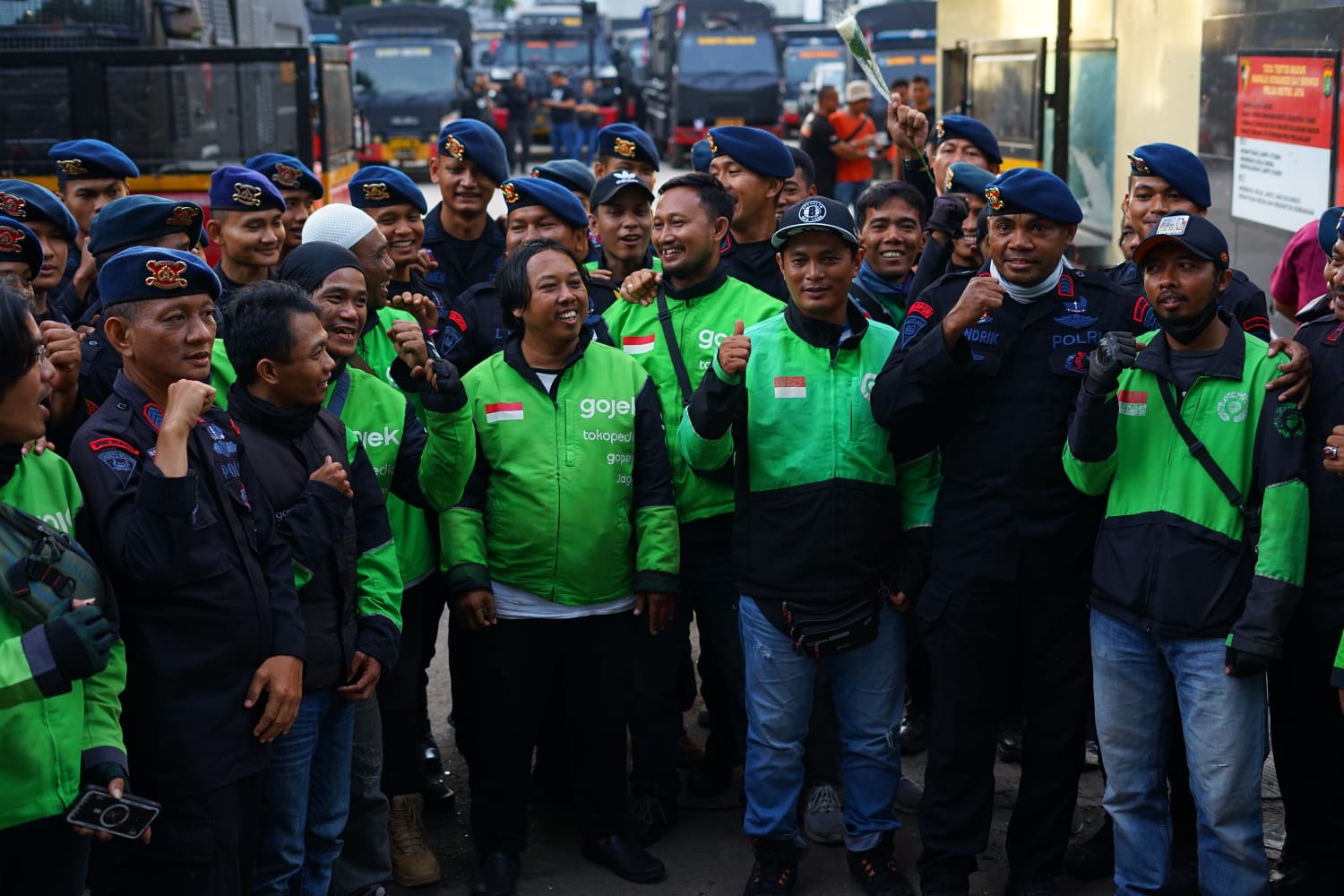 Aksi Damai Ojol peluk dan salami Brimob Kwitang, Wujud Keakraban