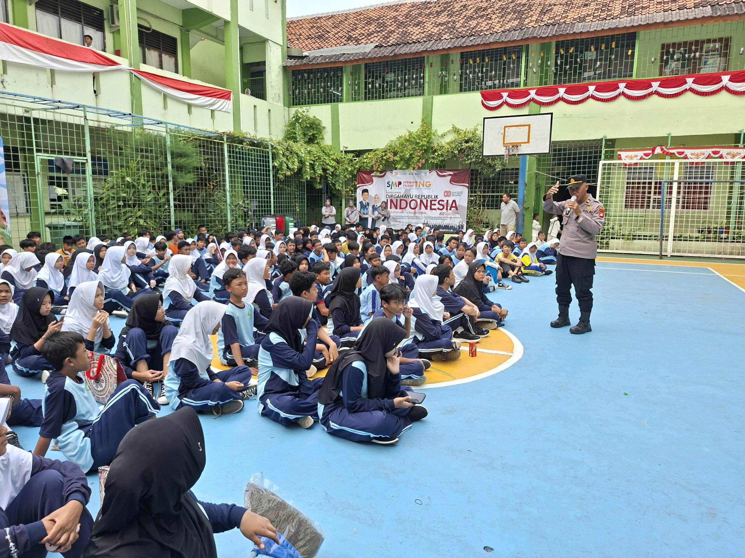 TANGERANG – Polsek Tangerang melalui Unit Binmas melaksanakan program Goes to School di SMP Syekh Yusuf, Kelurahan Sukasari, Kecamatan Tangerang, Jumat (22/8/2025). Kegiatan ini dipimpin oleh Panit Binmas Polsek Tangerang Iptu Hartoyo, S.H., didampingi Bhabinkamtibmas Kelurahan Sukasari AIPTU Budi Setiawan.