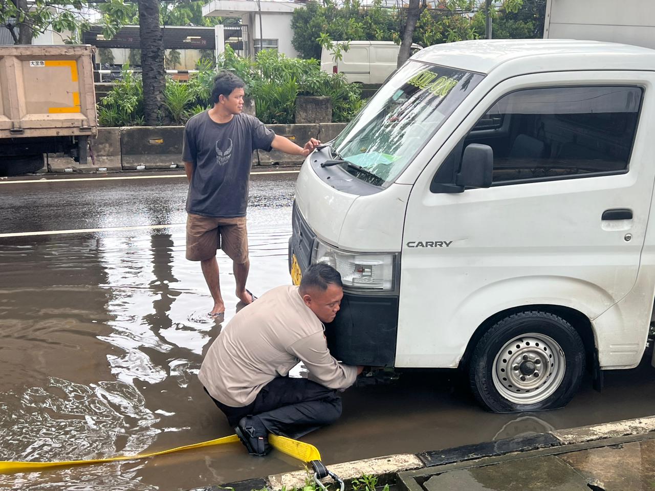 Dalam pelaksanaannya, personel melakukan pemantauan situasi di sekitar Jl. Daan Mogot Km 13 yang terpantau mengalami genangan air setinggi 10–20 cm. Arus lalu lintas sempat tersendat dan hanya dapat dilalui melalui dua jalur, yakni jalur paling kanan dan jalur Busway. Petugas juga melakukan pengaturan lalu lintas serta membantu menderek kendaraan masyarakat yang mengalami mogok menggunakan truk rantis rescue.