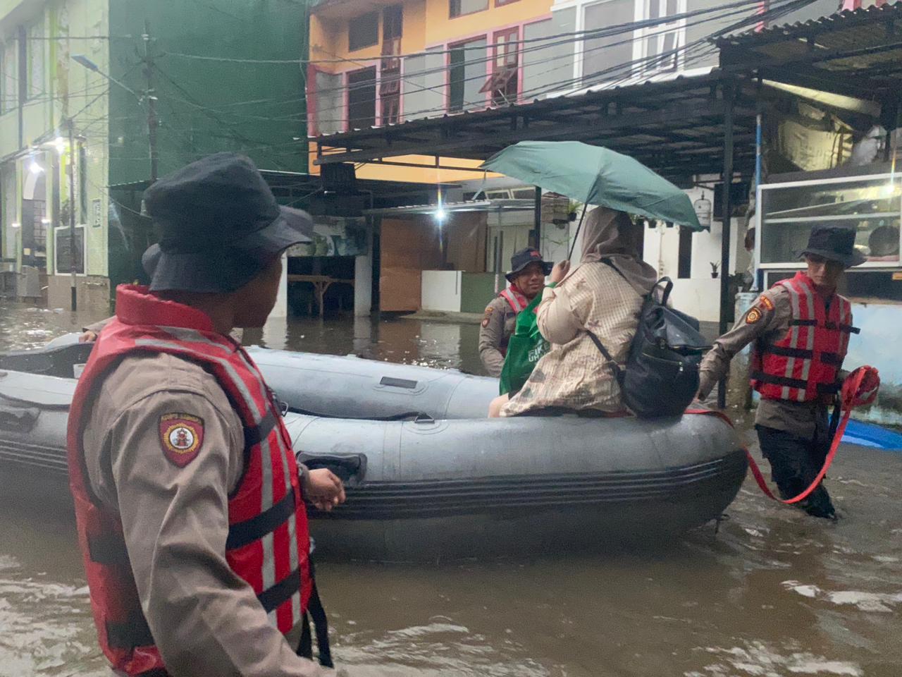 Dalam pelaksanaannya, debit air di wilayah Komplek Polri Pondok Karya terpantau mengalami peningkatan hingga kurang lebih 100 cm. Menyikapi kondisi tersebut, personel Sie Pammat bergerak cepat memberikan bantuan kepada warga yang tetap harus beraktivitas, dengan menggunakan perahu karet guna memastikan keselamatan dan kelancaran mobilitas warga.