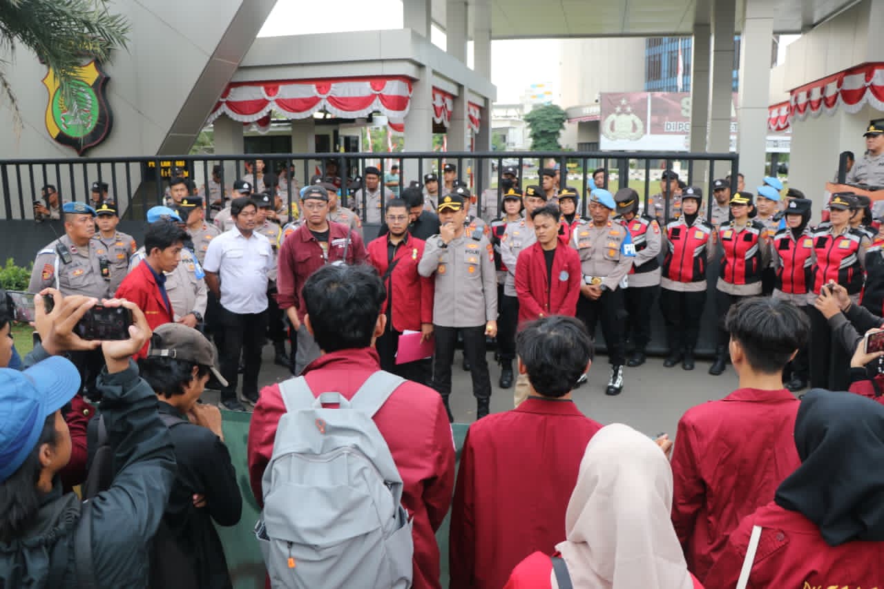 Disatu sisi Kapolres metro Tangerang kota saat menemui mahasiswa mengapresiasi dan mendukung aksi mahasiswa dan menjamin keamanan serta kenyamanan saat melakukan aspirasi di depan polres metro Tangerang kota.
