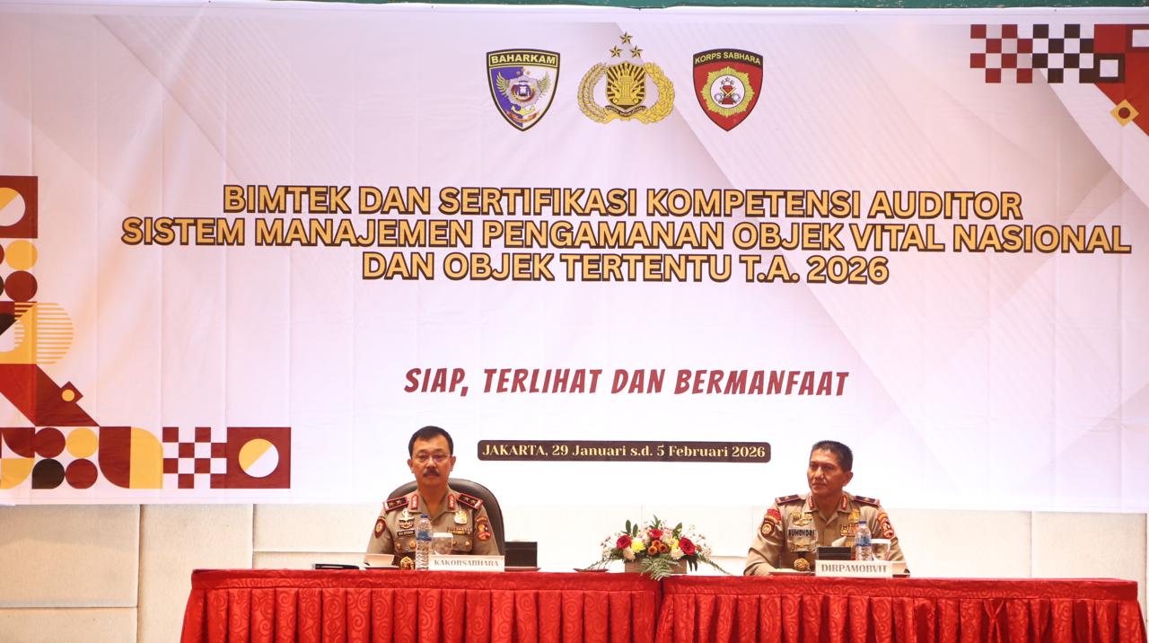 Jakarta — Kakorsabhara Baharkam Polri secara resmi membuka kegiatan Bimbingan Teknis dan Sertifikasi Kompetensi Auditor Sistem Manajemen Pengamanan (SMP) pada Kamis (29/1/2026). Kegiatan ini dilaksanakan selama lima hari, mulai 29 Januari hingga 2 Februari 2026, dan dilanjutkan dengan uji kompetensi pada 3–5 Februari 2026.