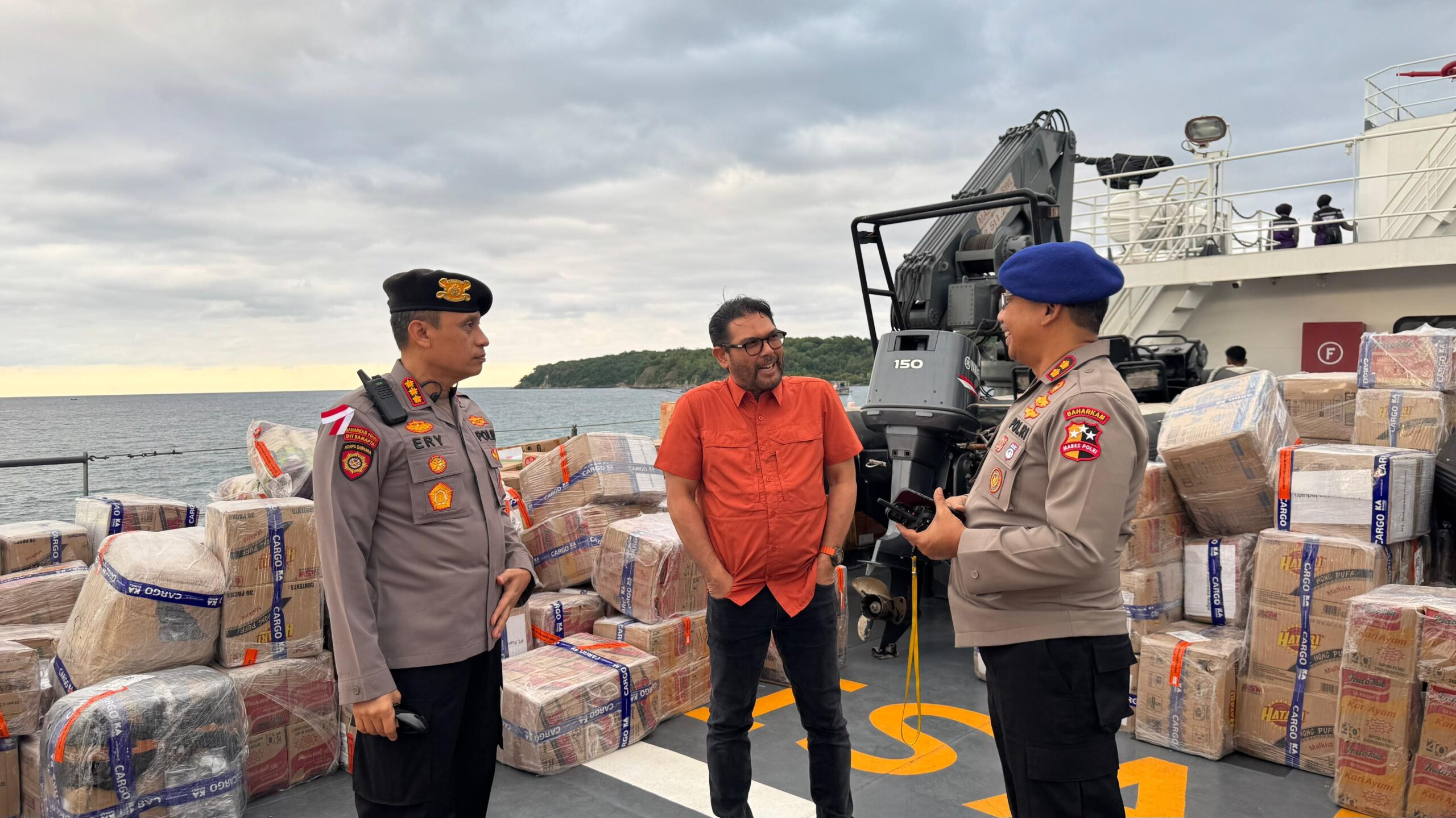 Bantuan yang dibawa oleh Kapal Polri Wisanggeni 8005 ini ditujukan untuk mendukung peningkatan kinerja dan operasional di lima Polres, meliputi