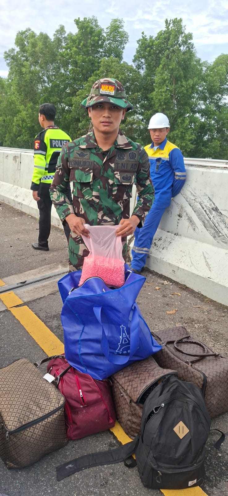 Lampung — Respons cepat dua prajurit Korem 043/Gatam dalam menindaklanjuti kecelakaan lalu lintas di Jalan Tol Trans Sumatra KM 136 jalur B, Kamis (20/11/2025), berhasil menggagalkan peredaran narkotika jenis ekstasi dalam jumlah besar.