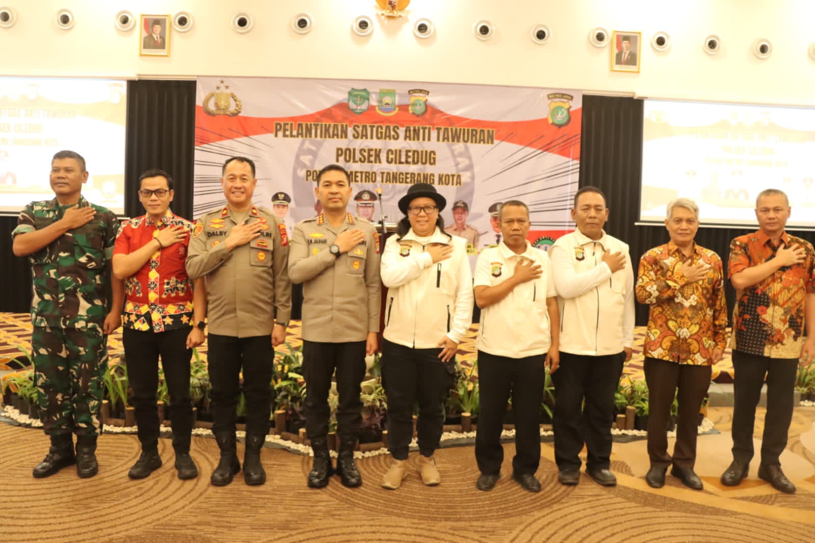 TANGERANG– Pagi yang sejuk di Ballroom Hotel Horison, Jl. Ciledug Raya, berubah hangat oleh semangat kebersamaan. Sekitar 100 orang dari berbagai unsur Polisi, TNI, pemerintah kecamatan, tokoh masyarakat, hingga pemuda—berkumpul dalam sebuah agenda penting: pelantikan Satgas Anti Tawuran wilayah hukum Polsek Ciledug. Sabtu (2/08/2025).