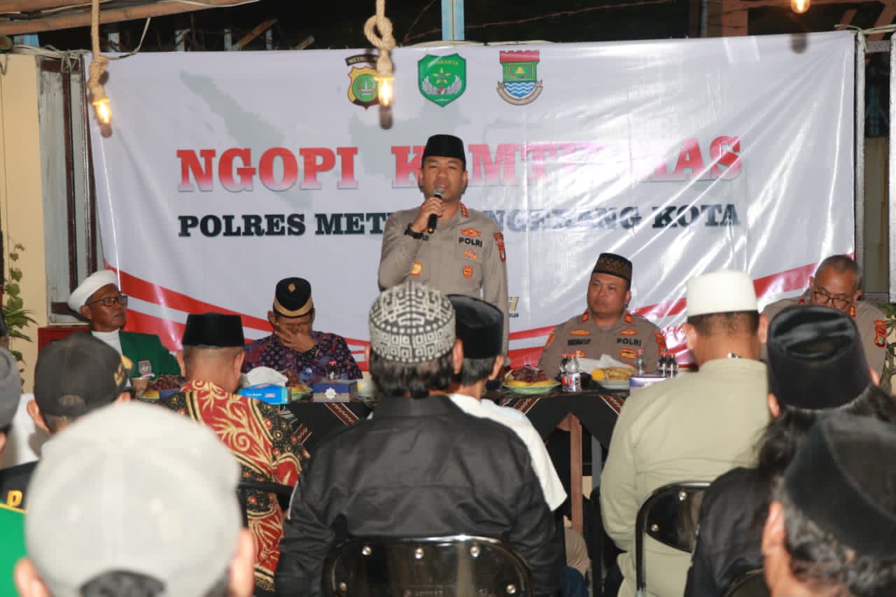 TANGERANG– Suasana hangat terasa di Kampung Sahabat, Desa Surya Bahari, Kecamatan Pakuhaji, Kabupaten Tangerang, Kamis (21/8/2025) malam. Sekitar 60 warga, tokoh masyarakat, hingga perangkat desa berkumpul dalam kegiatan Ngopi Kamtibmas bersama Kapolres Metro Tangerang Kota, Kombes Pol Dr. Raden Muhammad Jauhari, S.H., S.I.K., M.Si.
