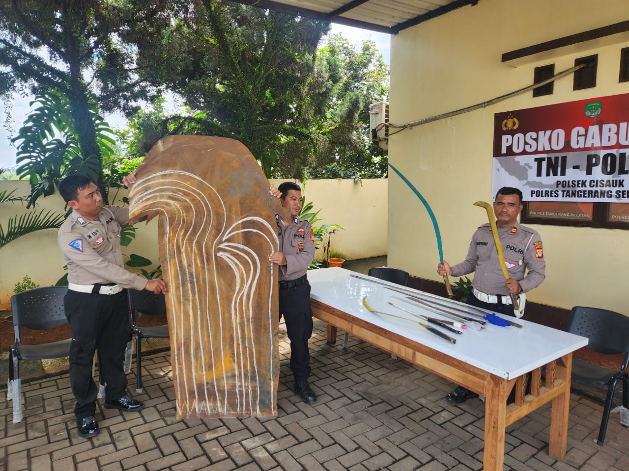Pada saat tiba dilokasi Personil bergerak cepat dengan mengamankan para remaja beserta sejumlah senjata tajam yang telah disiapkan selanjutnya para remaja serta barang bukti  diamankan ke Polsek Cisauk untuk dilakukan pengembangan.