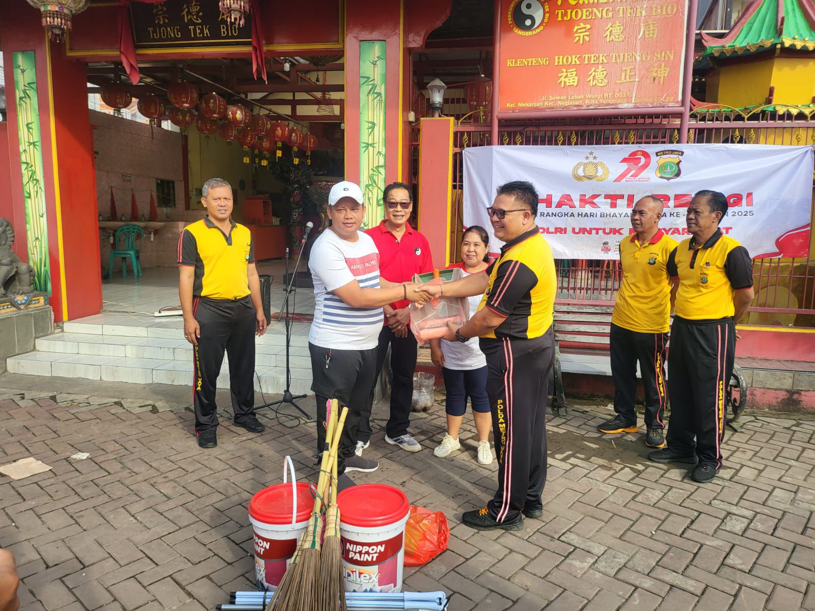 TANGERANG– Dalam rangka menyambut Hari Bhayangkara ke-79, Polres Metro Tangerang Kota melaksanakan kegiatan Bakti Religi di Vihara Tjong Tek Bio, yang berlokasi di Kp. Lebak Wangi, Kelurahan Mekarsari, Kecamatan Neglasari, Kota Tangerang, Jumat (20/6/2025) pagi.